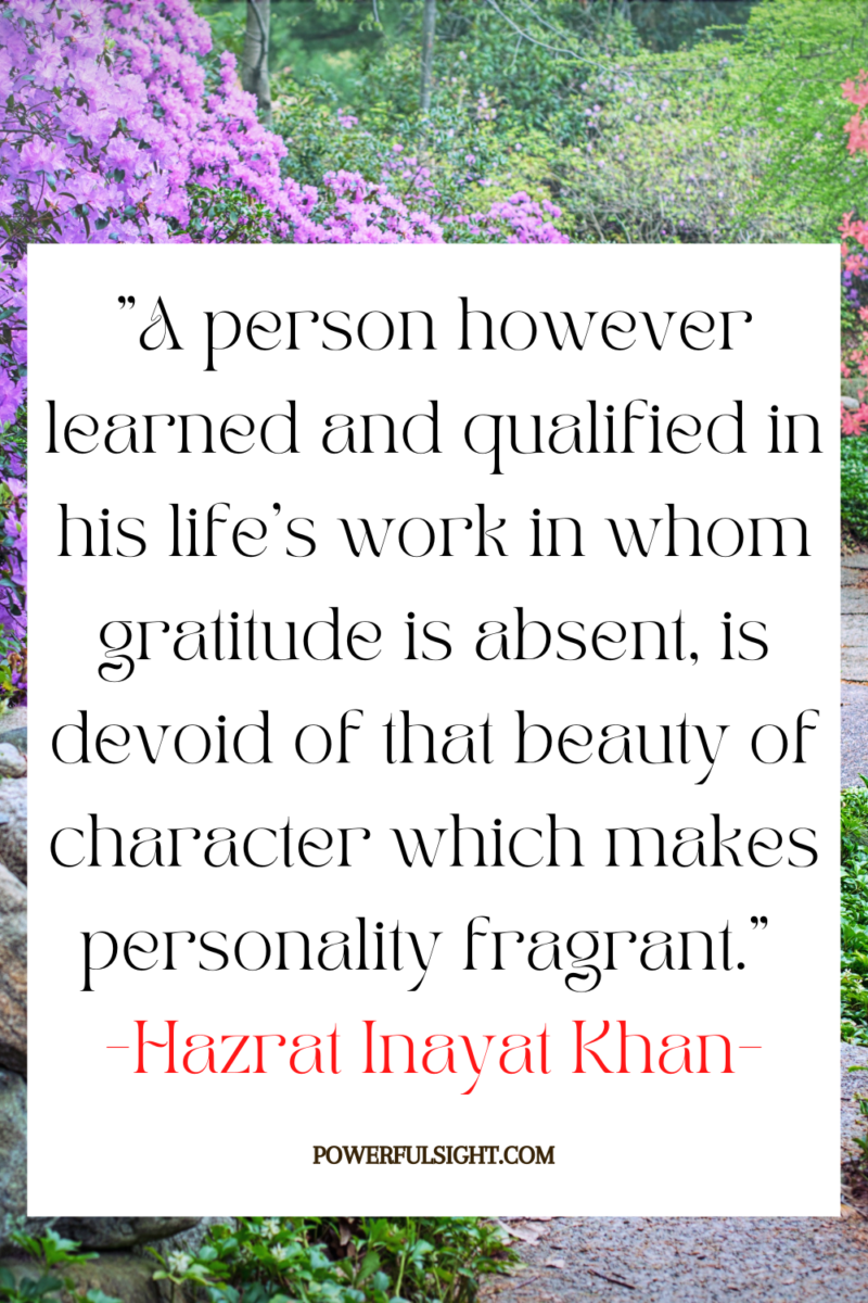 10. “A person however learned and qualified in his life’s work in whom gratitude is absent, is devoid of that beauty of character which makes personality fragrant.” –Hazrat Inayat Khan-